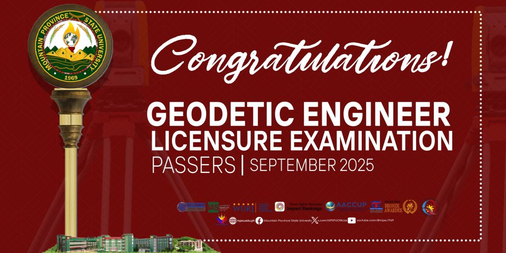 ๐๐ข๐ก๐๐ฅ๐๐ง๐จ๐๐๐ง๐๐ข๐ก๐ฆ|| The Mountain Province State University proudly congratulates its alumni who passed the September 2025 Geodetic Engineers Licensure Examination. Hats