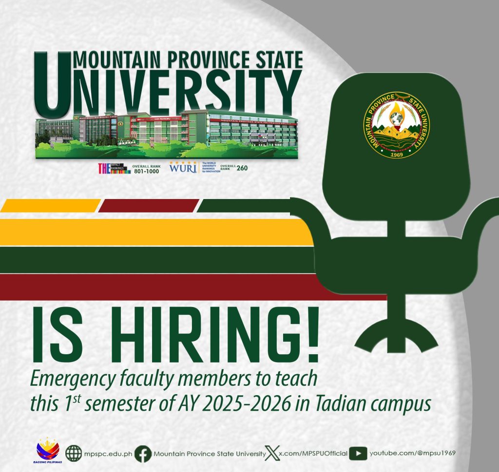๐ ๐ฃ๐ฆ๐จ ๐ถ๐ ๐๐ถ๐ฟ๐ถ๐ป๐ด|| Join MPSU-Tadian campus as an Emergency Faculty Member for the First Semester of Academic Year 2025โ2026. Be