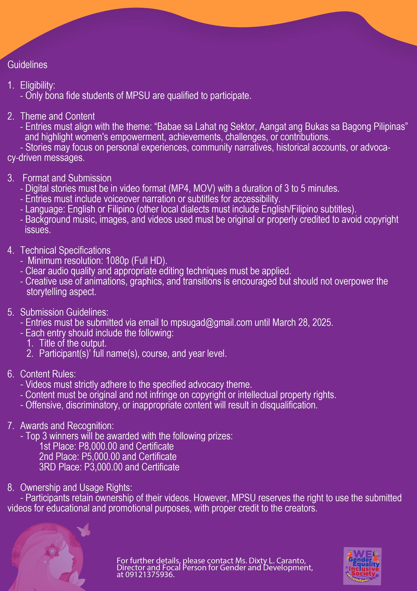 In celebration of Womenโs Month, the University, through its Gender and Development Unit invites all interested MPSUans to participate in the following various online competitions.