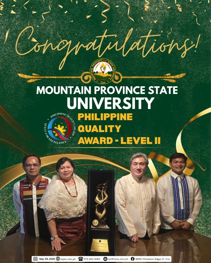 Malacaรฑang, ManilaโMountain Province State University (MPSU) was among the distinguished recipients of the 27th Philippine Quality Award (PQA) during the Conferment Ceremony today, September 5, 2025, at the Malacaรฑang Palace.