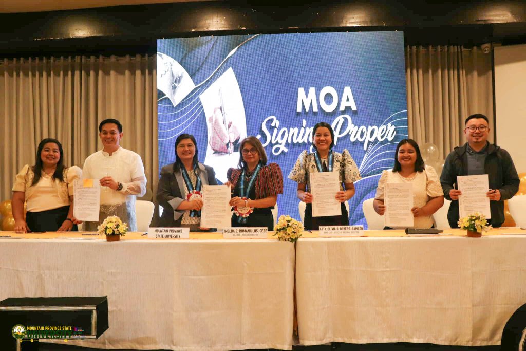 Present during the ceremony were DOLE-CAR officials, including Regional Director Imelda E. Romanillos, CESE, Assistant Regional Director Atty. Olivia O. Obrero-Samson, Provincial Director of DOLE-Mountain Province George G. Lubin Jr., and Mylene M. Palaleo, Livelihood Focal Person of Mountain Province Field Office. Representing MPSU, the university president Dr. Edgar G. Cue was represented by Dr. Epiphania B. Magwilang, Vice President for Research, Development, and Extension, together with Dr. Elvin P. Rosario, Dean of the School of Accountancy, Business Education, and Technology, and Dr. Megan R. Matias, Program Chairperson of Business Administration.