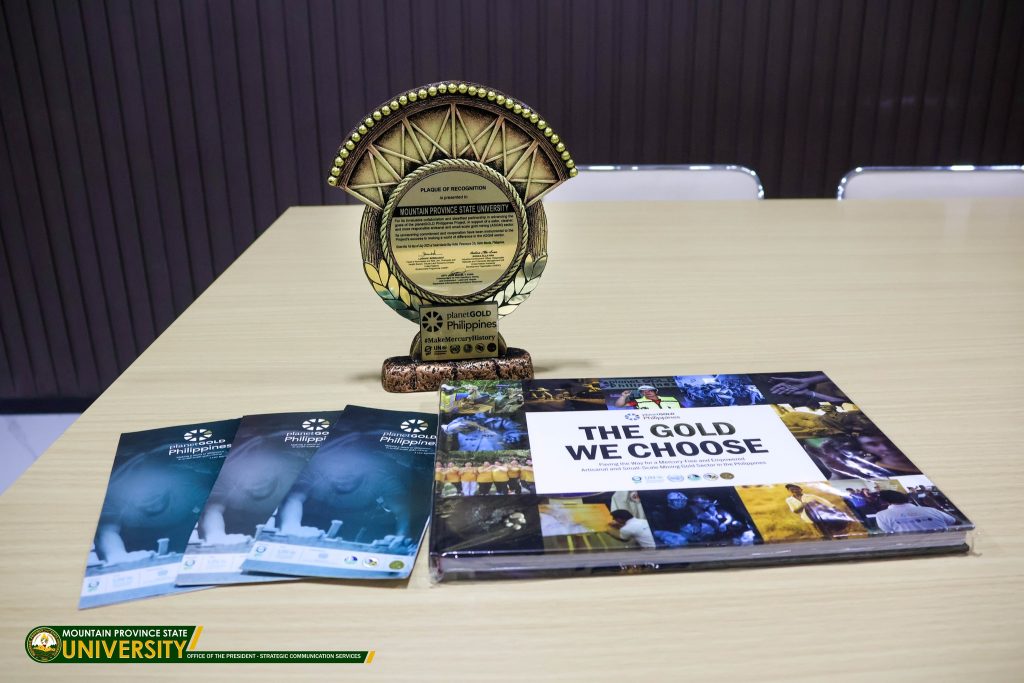October 13, 2025โAssistant Field Coordinator Carmen T. Malabong, representing Project Manager Abigail Ocate of PlanetGold Philippines, presented a Plaque of Recognition to Dr. Edgar G. Cue, University President of Mountain Province State University (MPSU), during a courtesy visit at the Office of the University President.