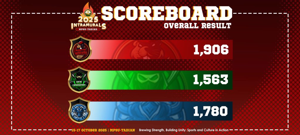 The Phantom Beavers of the College of Engineering were crowned again as the OVERALL CHAMPION during the MPSU-Tadian 2025 Intramural Sports Fest. The Beavers gained an overall score of 1,906.