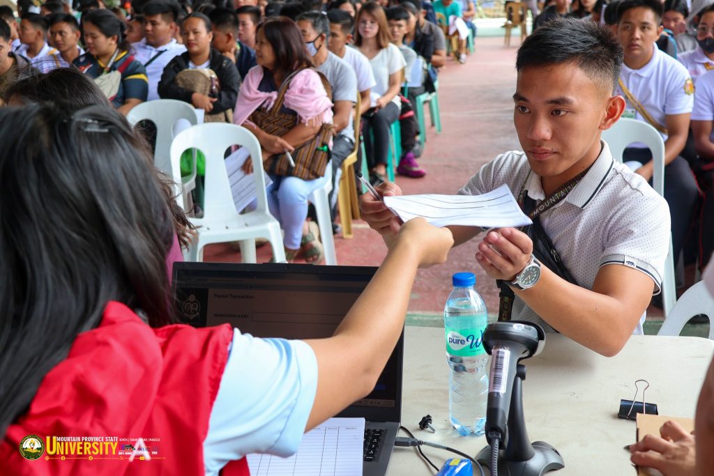 Students of the University from the municipalities of Bauko, Barlig, Bontoc, Natonin and Paracelis received their grant from the Assistance to Individuals in Crisis Situation (AICS) today, 16 October 2025, at the Eyeb Covered Gym.