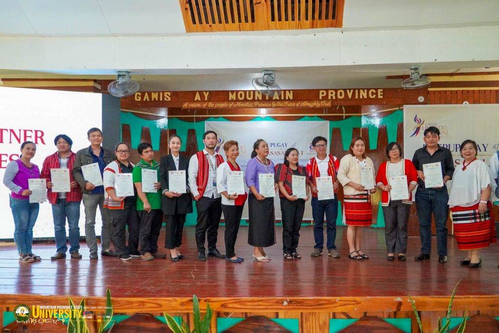 The Mountain Province State University received the Galing Para sa Bayan Award for being a Prime HRM Bronze Awardee by the Civil Service Commission during its Pasasalamat at Pagpupugay sa mga Lingkod-Bayani ng Montaรฑosa. The University also received a certificate of appreciation as one of the partner agencies during the 125th Philippine Civil Service Anniversary celebration.