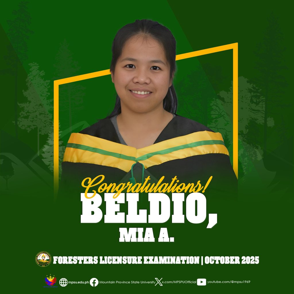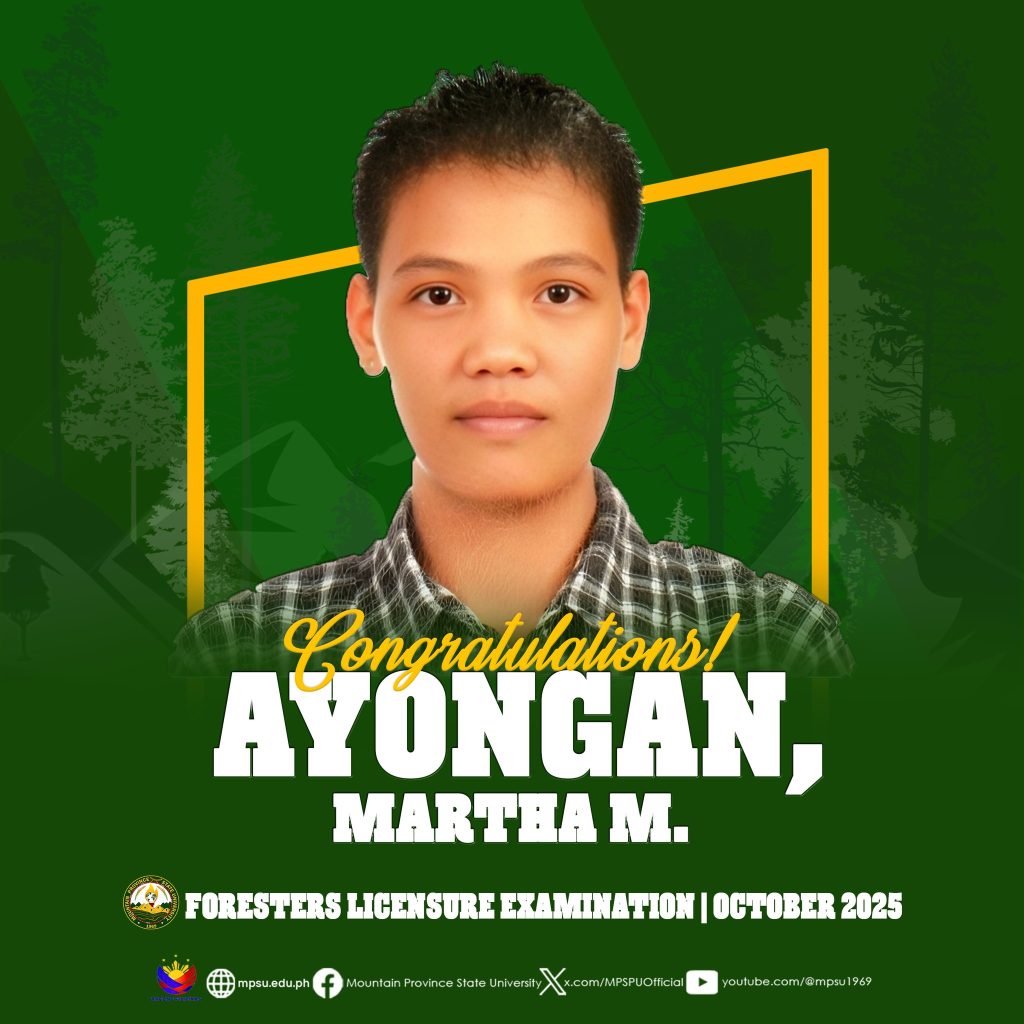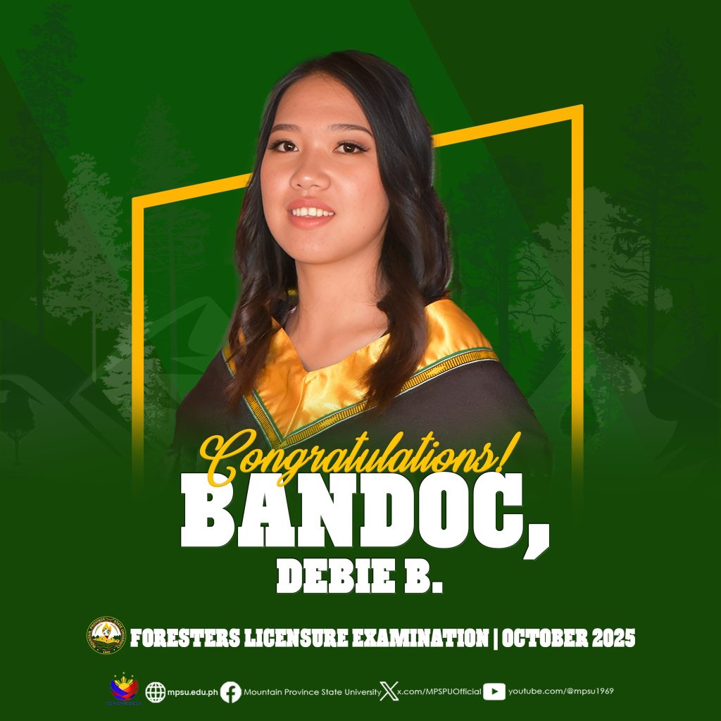 ๐๐ข๐ก๐๐ฅ๐๐ง๐จ๐๐๐ง๐๐ข๐ก๐ฆ|| The Mountain Province State University proudly congratulates eight of its alumni who are among the 1,471 out of 2,054 who passed the Foresters Licensure Examination given by the Board for Foresters this October 2025.