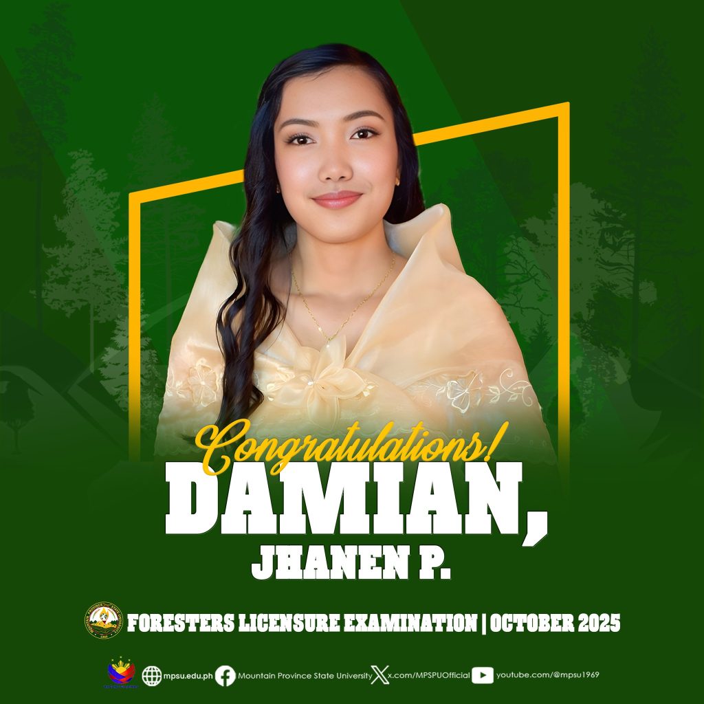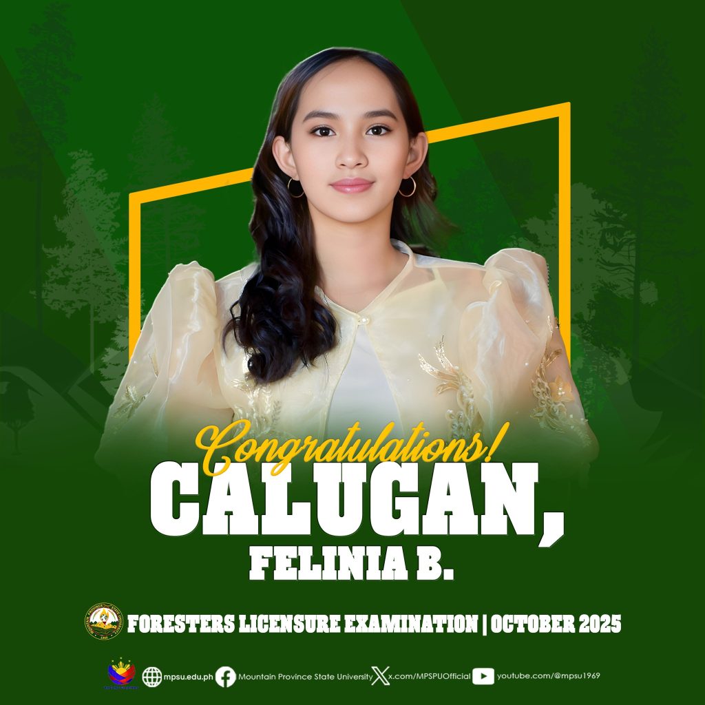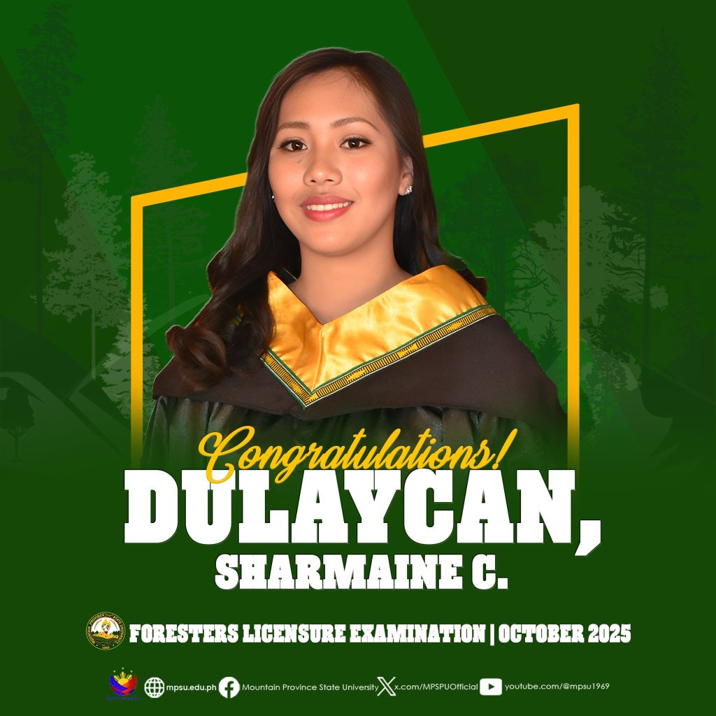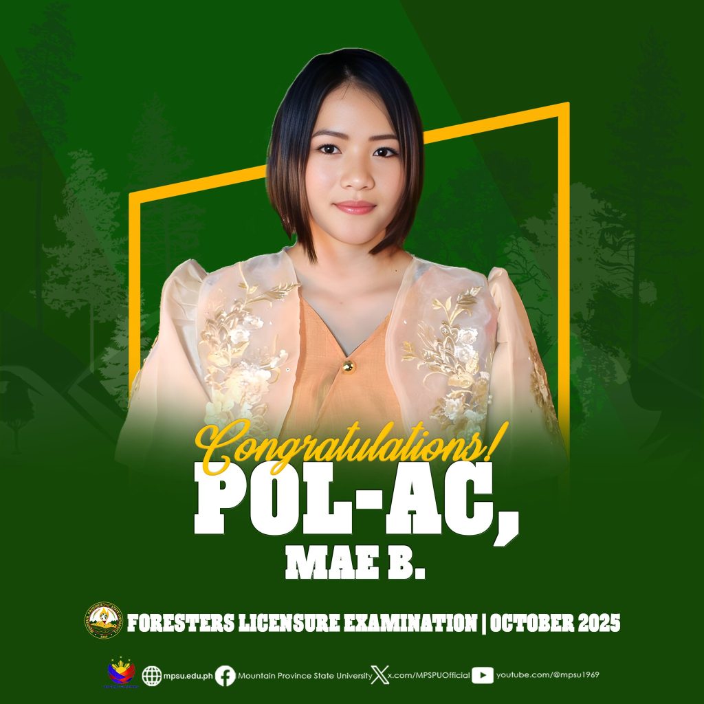 ๐๐ข๐ก๐๐ฅ๐๐ง๐จ๐๐๐ง๐๐ข๐ก๐ฆ|| The Mountain Province State University proudly congratulates eight of its alumni who are among the 1,471 out of 2,054 who passed the Foresters Licensure Examination given by the Board for Foresters this October 2025.