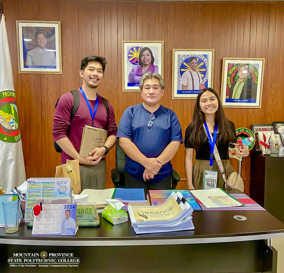 MPSPC President Dr. Edgar G. Cue received a courtesy call from Ms. Jezelle Q. Oliva and Mr. Jade Maurice Jimenez of the Technological Consortium for Awareness, Readiness, and Advancement of Knowledge in Innovation- Cordillera (TARAKI-CAR) at the Office of the College President yesterday, June 19, 2024.