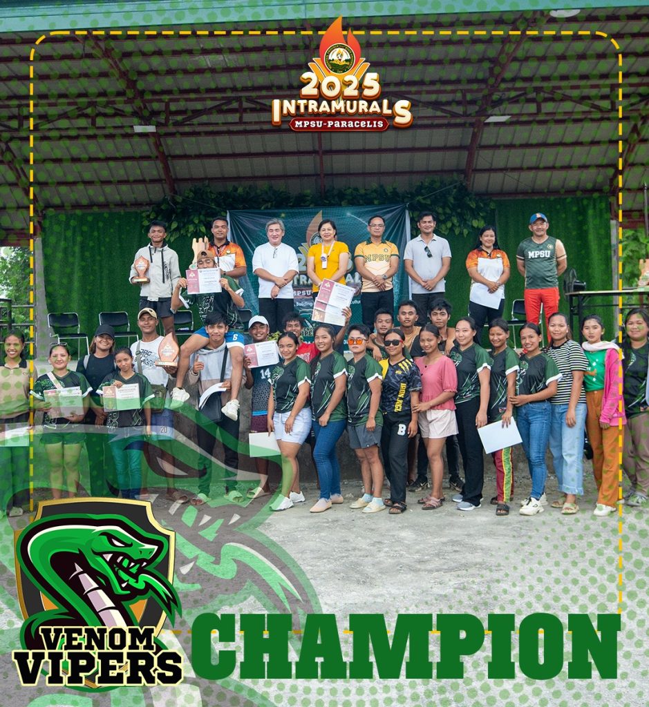 Bacarri, Paracelis, MP— In a literal heat and intense show of prowess, the Venom Vipers made history as the first overall champion for MPSU-Pracelisโ Intramural Sports Fest, sealing the victory with a 7-point difference from the Jaguars. It collected an overall score of 404 points.