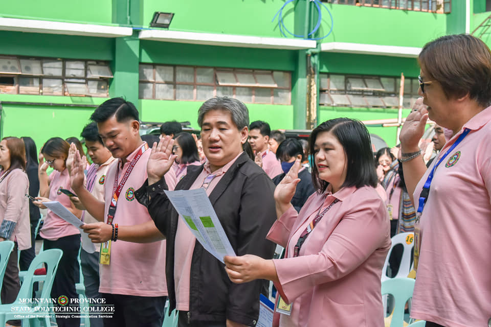 Prior to this, Dr. Cue highlighted in his message the remarkable accomplishments conquered by the college during the past weeks. “I take pride to announce that MPSPC PASSED the conducted International Organization for Standardization (ISO) Surveillance Audit on May 24, 2024. Also, our institution was HAILED as the CHAMPION garnering 97.1 % in the the conducted Regional Annual Administrative Tactical Inspection (RAATI) 2024 among all State Universities and Colleges in the Cordillera on May 25, 2024. Further, MPSPC SOARED HIGH in the recently announced World University Rankings for Innovations 2024 during the Hybrid Conference last June 07, 2024. It is therefore a FEAT towards an overall ranking of the global top 300 innovative universities, we RANKED 260TH. More than these, the participation of our institution in the recently conducted Philippine Coffee Expo on June 7-9, 2024, Mr. Domingo Lawagey, Director of Montanosa Coffee Center, placed SECOND in the Arabica Category of the 2024 Philippine Coffee Quality Competition,” Dr. Cue added.