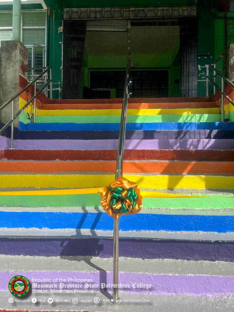 The painting of the MPSPC Diversity Stairs serves as a symbol of MPSPC’s commitment to creating a safe and supportive spaces for everyone. The activity is a kick-start to commemorate the series of activities and initiatives in line with the institution’s celebration of Pride Month 2024. Student leaders, ROTC officers and members, members of the LGBT students and employees participated the painting of the Diversity stairs on June 1-2, 2024 at the MPSPC Bontoc campus’ gates 1 and 2.