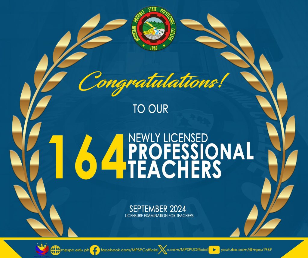 Congratulations to the 164 newly registered Professional Teachers from Bontoc and Tadian campuses!