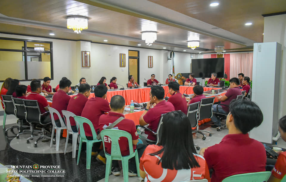College President Dr. Edgar G. Cue presides a meeting with the College Officials and Coaches of Mountain Province State Polytechnic College on the Cordillera Administrative Region Association of State Universities and Colleges (CARASUC) 2024 at the Administrative Conference Hall today, May 9.