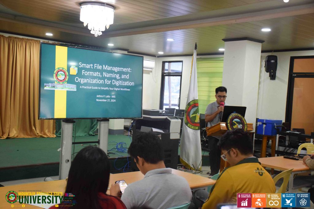 Document custodians from the academic and administration sectors underwent a training-workshop on streamlining documents through digital files and network storage solutions today, 27 November 2024 at the Administration Conference Hall.
