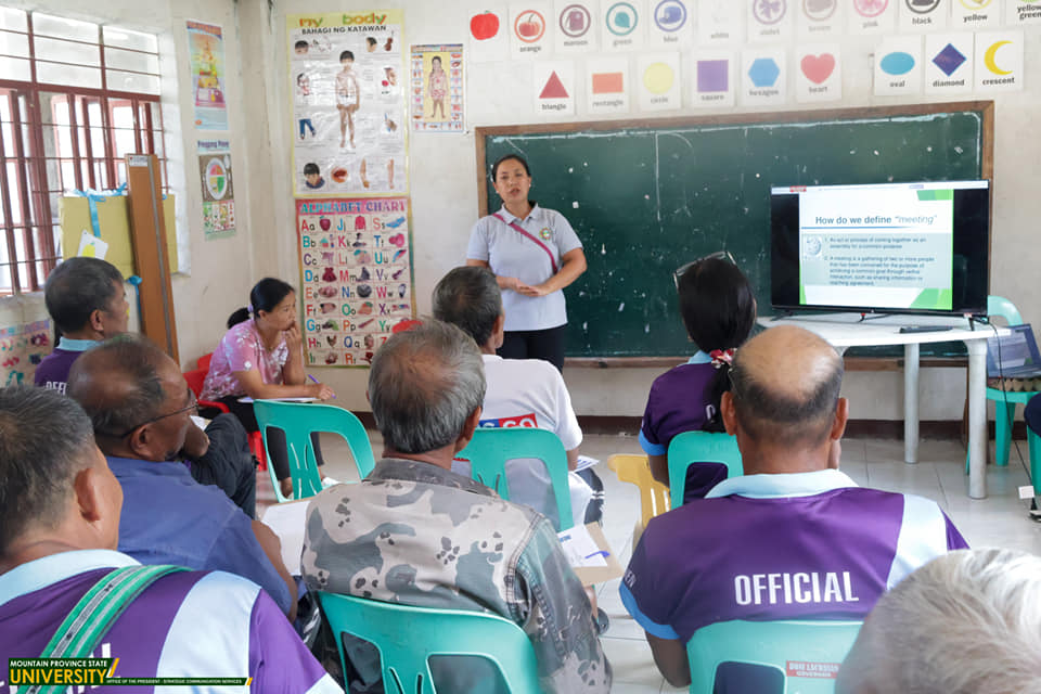 Mountain Province State University (MPSU), through its School of Accountancy, Business, and Technology (SABT)-Bachelor of Science in Office Administration (BSOA), conducts a capacity building on meetings, time, and stress management with completed staff work among barangay officials, SK officials, and staff of Barangay Betwagan held at Betwagan Barangay Hall, Betwagan, Sadanga, Mountain Province today, November 13.