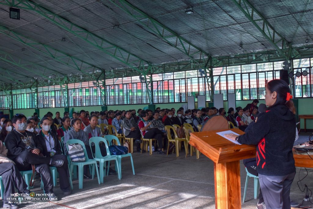 Freshmen and continuing students from the Bachelor of Science (BS) in Nursing underwent the third phase of Studentsโ General Orientation that was spearheaded by the Student Services and Development (SSDO) today, January 25, at the College Auditorium, Bontoc, MP. College President Edgar G. Cue, represented by Executive Assistant Shaine K. Macliing, welcomed the students and emphasized their importance as role models and shapers for the institution and the community. He also thanked the Nursing Department officials for their dedication and support for the students.