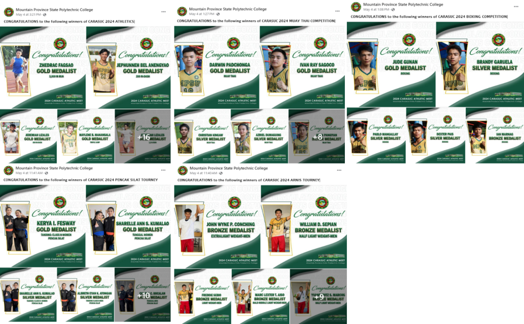 The CARASUC Athletic Meet 2024, hosted by Apayao State College in Luna, Apayao from April 28 to May 3, 2024, was a testament to these principles. It brought together student-athletes from different SUCs in the Cordilleras for a series of competitive and collaborative sports events. The event not only showcased the sportsmanship and talents of the student-athletes but also highlighted the camaraderie and unity among all participants. Mountain Province State Polytechnic College (MPSPC) contributed significantly to this inclusive atmosphere by sending 240 student-athletes, 42 coaches, and college officials, totaling 282 participants.