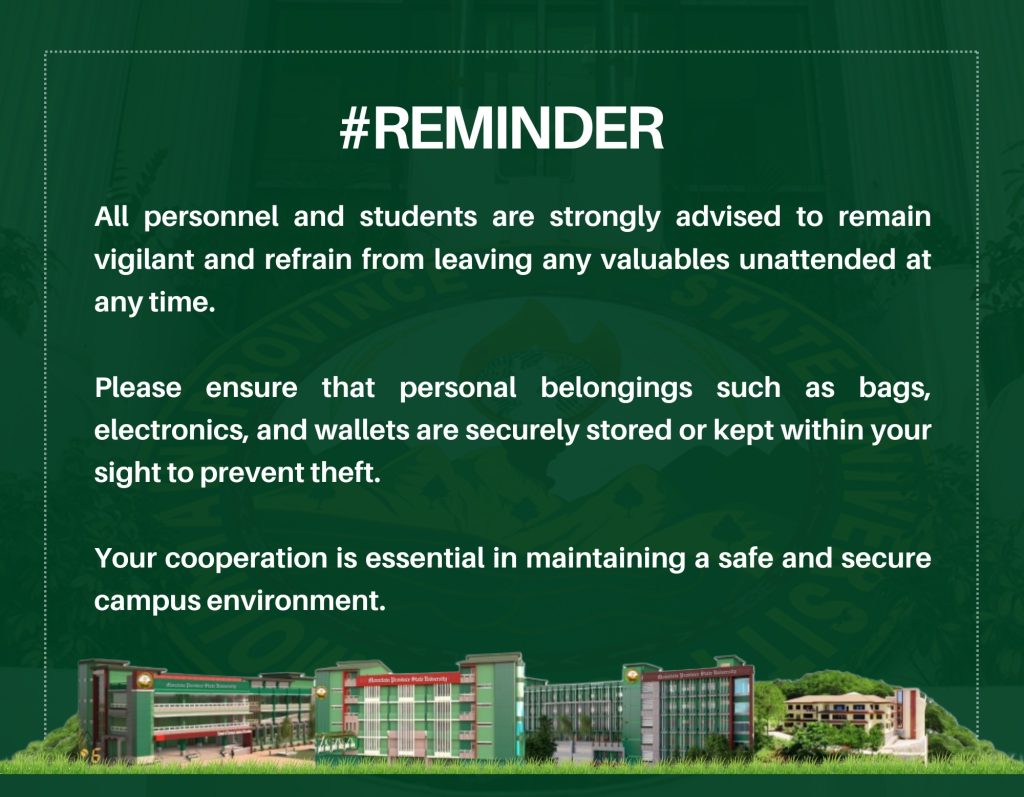 π₯ππ ππ‘πππ₯|| All personnel and students are strongly advised to remain vigilant and refrain from leaving any valuables unattended at any time.