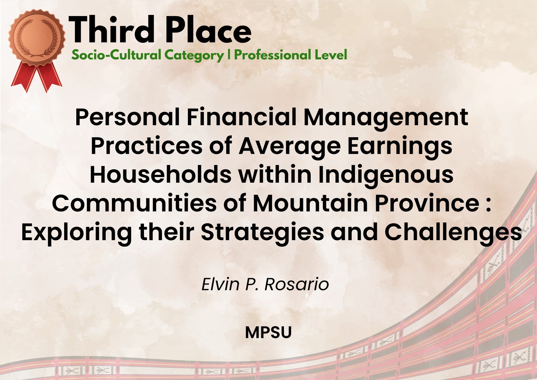 Personal Financial Management Practices of Average Earnings Households within Indigenous Communities of Mountain Province: Exploring their Strategies and Challenges by Dr. Elvin P. Rosario