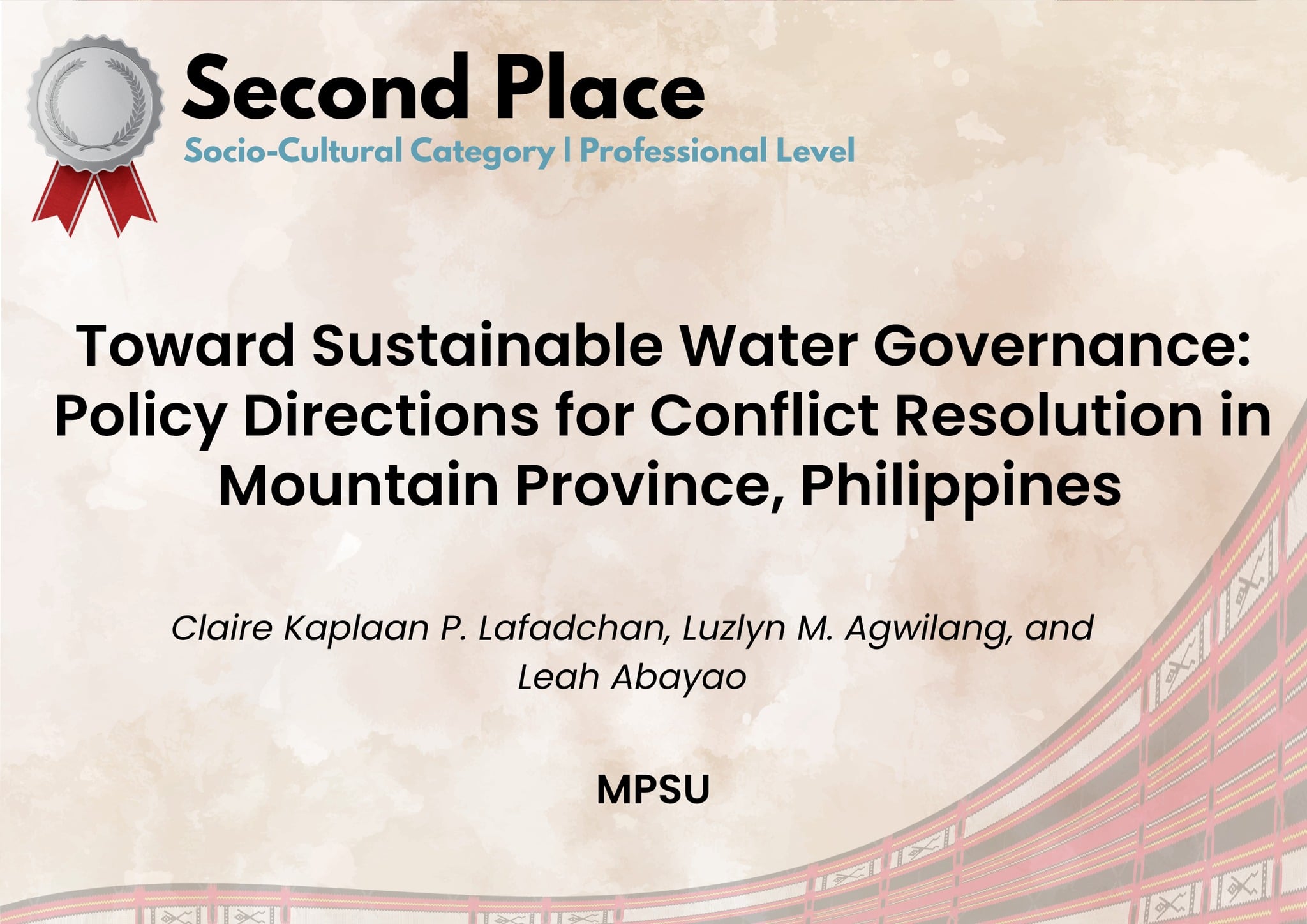 Toward Sustainable Water Governance: Policy Directions for Conflict Resolution in Mountain Province by Dr. Claire Kaplaa P. Lafadchan, Ms. Luzlyn M. Agwilang and Dr. Leah E. Abayao