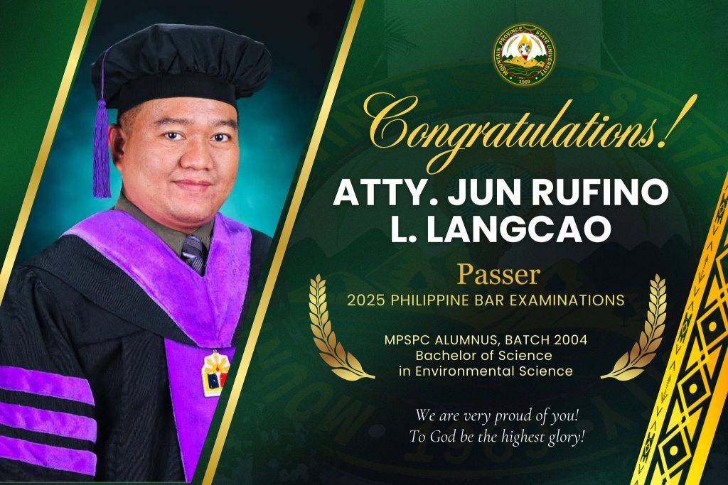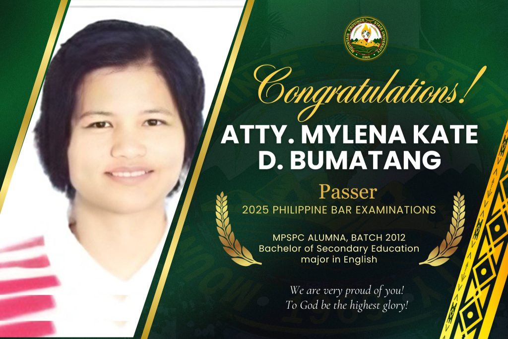 𝗖𝗢𝗡𝗚𝗥𝗔𝗧𝗨𝗟𝗔𝗧𝗜𝗢𝗡𝗦, 𝗔𝗧𝗧𝗬𝘀! The Mountain Province State University proudly congratulates four of its alumni for passing the 2025 Philippine Bar Examinations.