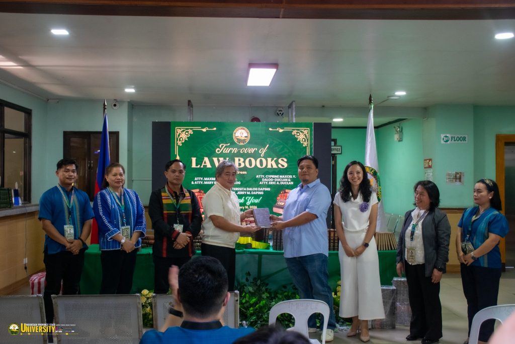 Administration Lobby — Earlier today, 16 February 2026, the University received law books donated by Atty. Maximo Y. Dalog, Jr., Atty. Mary Grace M. Dalog, Atty. Cyphrine Maxcel Dalog-Duclan, Atty. Eric S. Duclan, Ms. Virginia Teresita Dalog-Daping, and Atty. Jerry M. Daping.